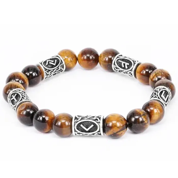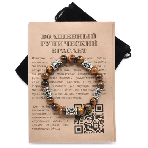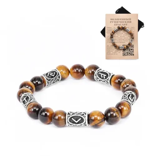 Рунический браслет из камня тигровый глаз с нанесёнными рунами.