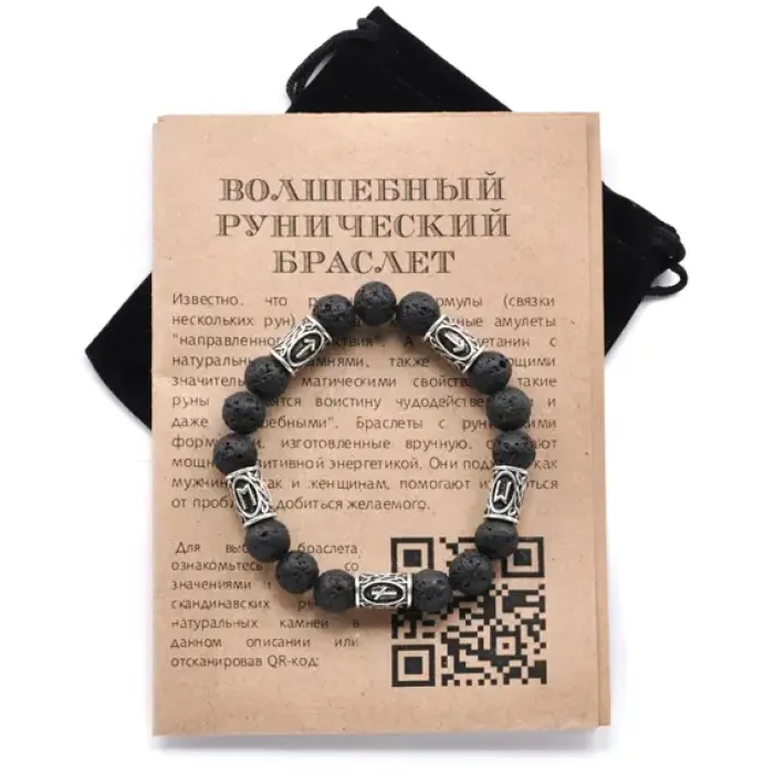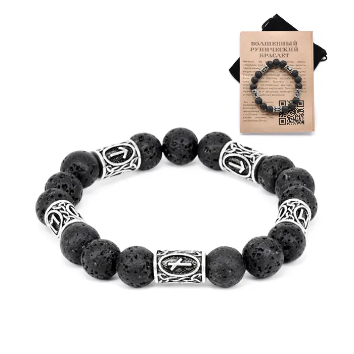 Рунический браслет «Исполнение любого желания» — это уникальный аксессуар, который сочетает в себе силу древних рун и магию камня лавы. Этот стильный стрейч-браслет имеет диаметр 10 мм и поставляется с черным мешочком в прозрачном пакете с европодвесом.