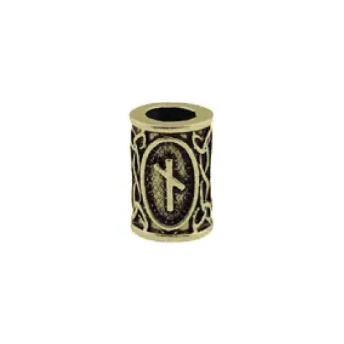 Латунная бусина-сувенир с изображением руны Наутиз для создания украшений или декора.