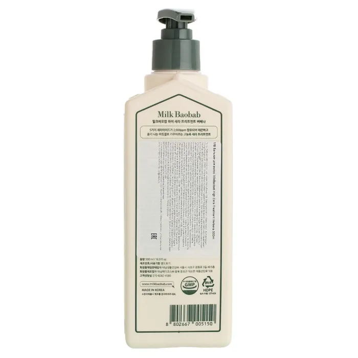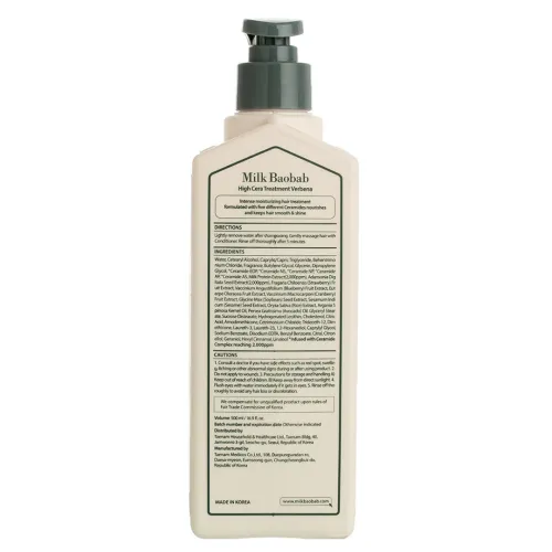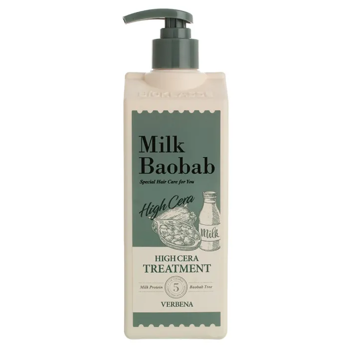 Бальзам для волос MilkBaobab High Cera Treatment Verbena 500 мл — это питательный тритмент, который укрепляет и восстанавливает структуру волос благодаря содержанию пяти видов керамиков. Он равномерно заполняет поврежденные участки волос, обеспечивая их гладкость и эластичность. Комплекс из шести видов меда интенсивно питает волосы и защищает кожу головы от внешних раздражающих факторов. Средство обладает свежим ароматом вербены и подходит для всех типов волос.