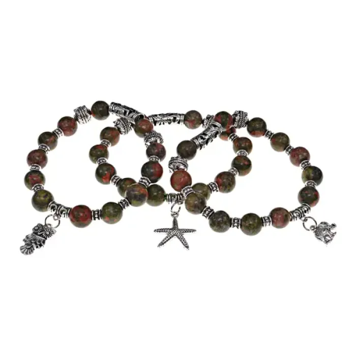 Браслет из натурального камня Унакит, подвески в ассорт. BJBS-240