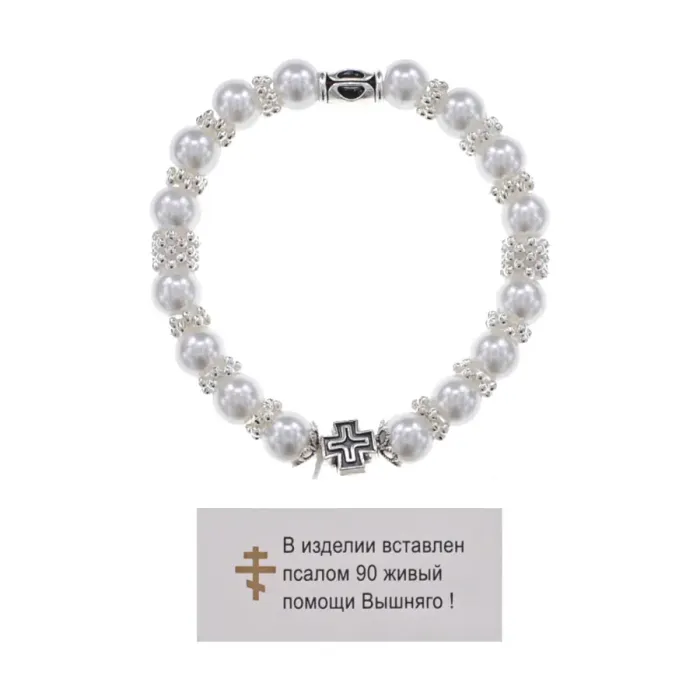 Этот православный стрейч-браслет с вставленным псалом 90 «Живый помощи Вышняго» станет символом веры и надежды. Бусины из майорки и бижутерного сплава с покрытием под серебро придают изделию элегантный вид.