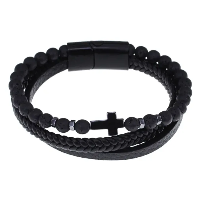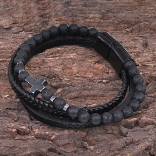 Браслет Спаси и сохрани, кожа и лава BS893-01