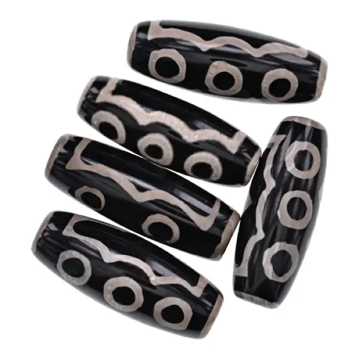 Тибетская бусина Дзи 5 глаз, нат. агат, 1 шт., ~40х15мм BDZS-036-02