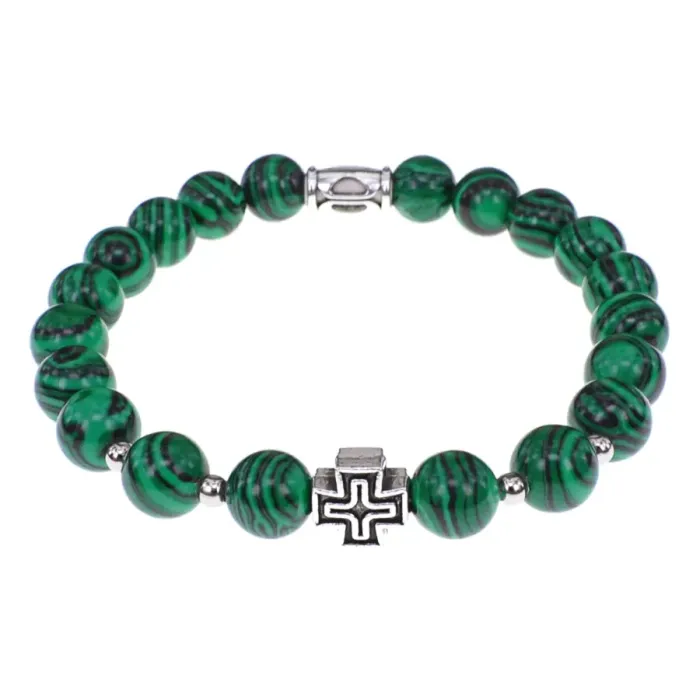 Браслет с Иисусовой молитвой, Малахит, 8мм BSHE-15-12