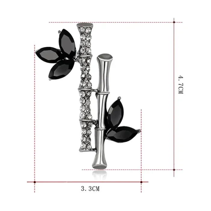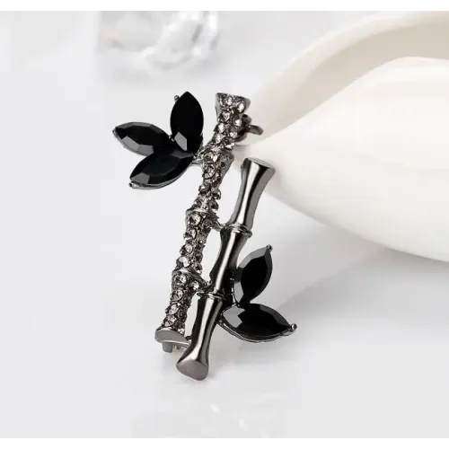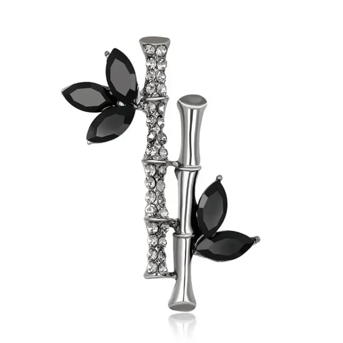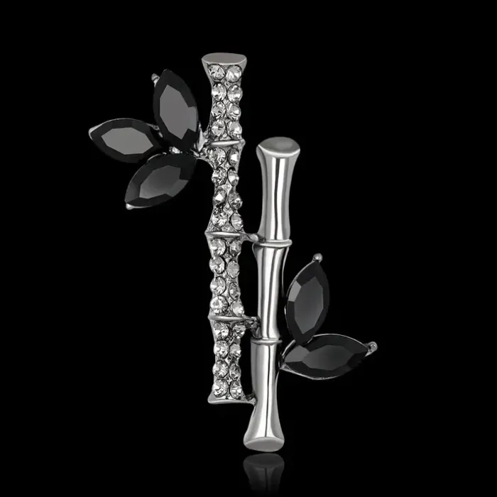 Брошь в форме бамбука из бижутерного сплава с кристаллами.