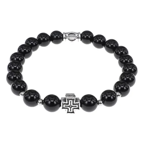Браслет с Иисусовой молитвой, Чёрный агат, 8мм BSHE-15-23