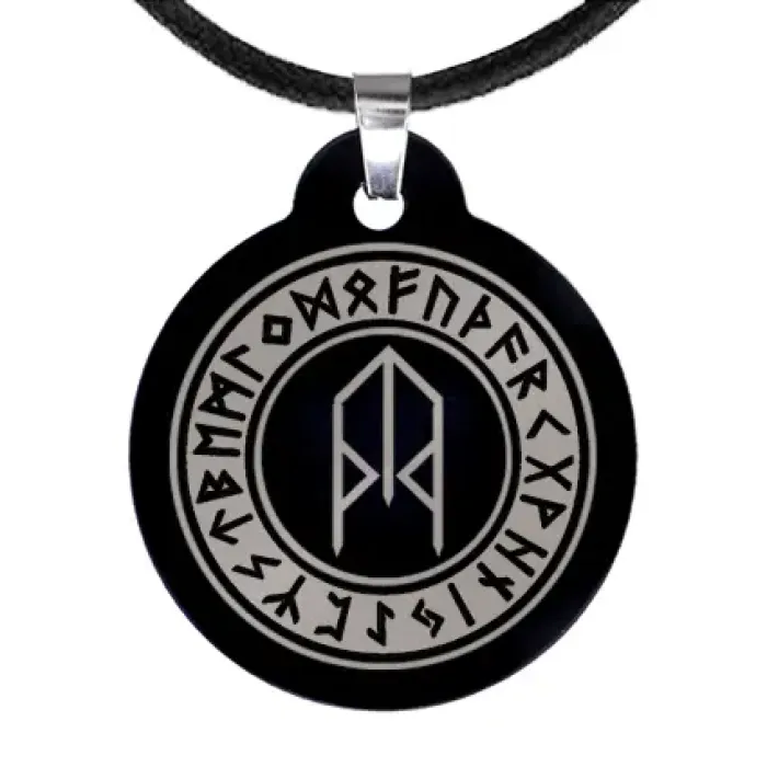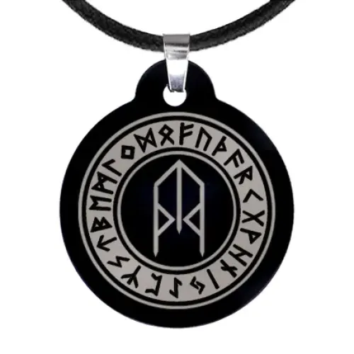 Рунический амулет из бижутерного сплава с лазерной гравировкой рун Турисаз и Тейваз.