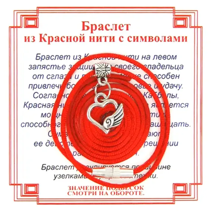 Браслет из красной нити на Любовь (Сердце),цвет сереб, металл, текстиль AB0086