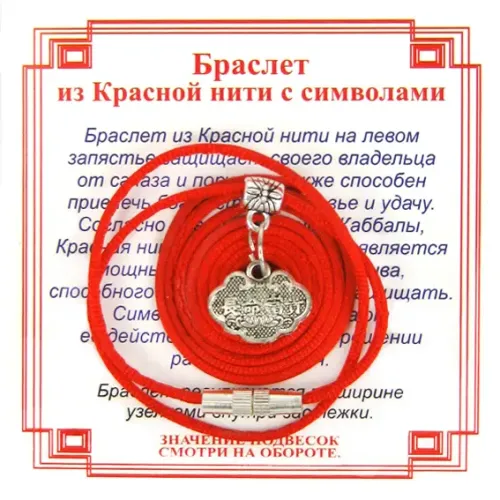 Браслет из красной нити на Долголетие (Замок), цвет серебро, металл, текстиль AB0320