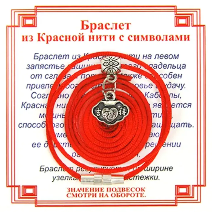Браслет из красной нити на Долголетие (Замок), цвет сереб, металл, текстиль AB0321