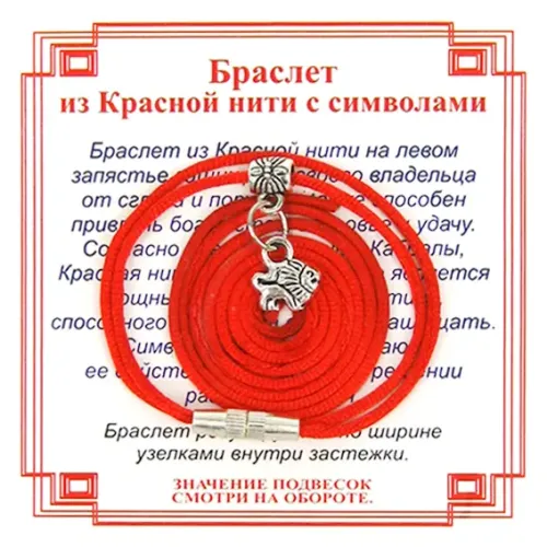 Браслет из красной нити на Силу (Лев),цвет сереб, металл, текстиль AB0335