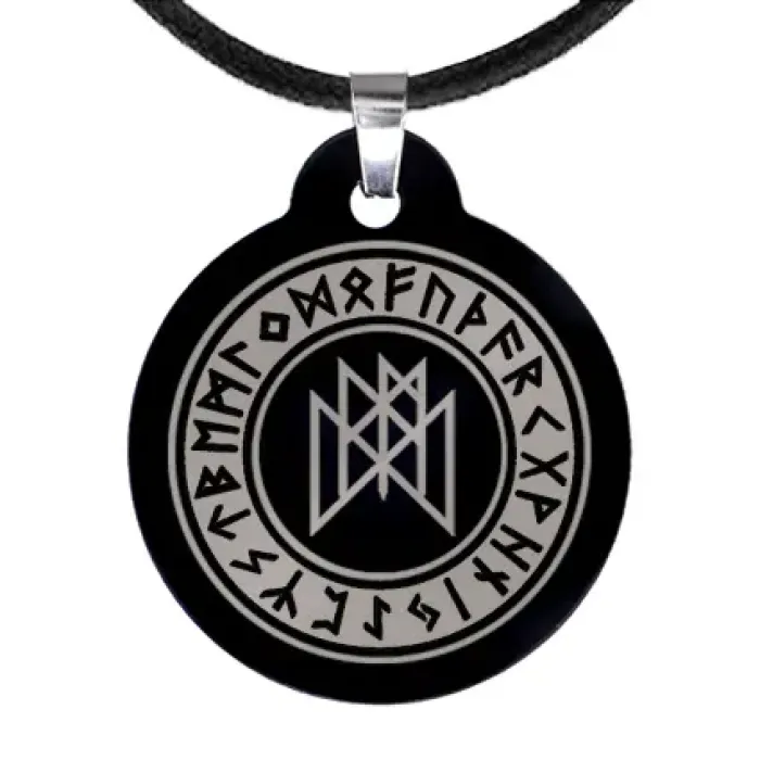 Рунический амулет для персональной защиты. Изготовлен из бижутерного сплава на основе алюминия с чёрным покрытием и лазерной гравировкой рун.