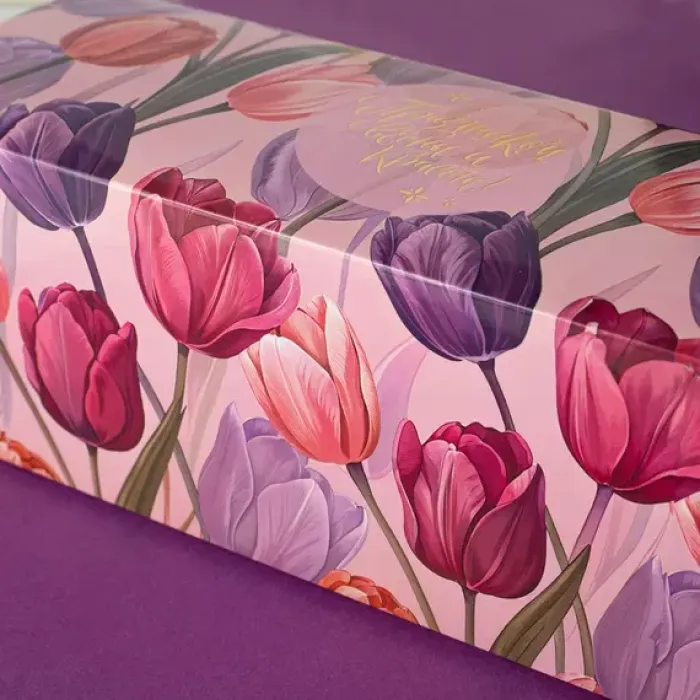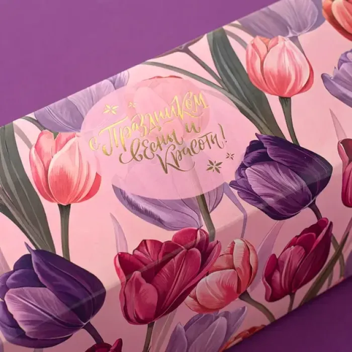 Шубер 8 Марта. Тюльпаны (фиол), к наборам на 3 банки / коробка PACK-045