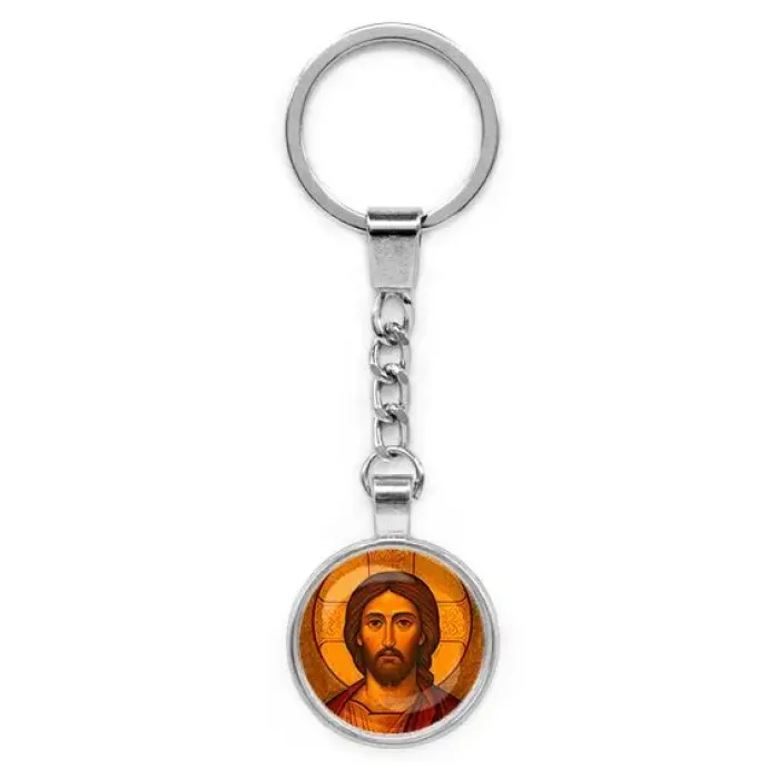 Круглый брелок, цвет серебро, с цепочкой, Иисус Христос C1101022