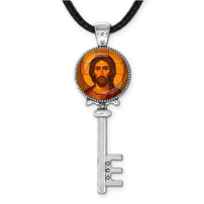 Кулон ключ, цвет серебро, со шнурком, Иисус Христос C1101043