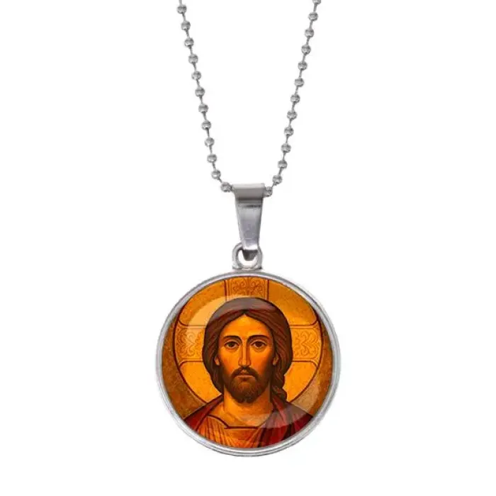 Этот кулон с изображением Иисуса Христа — прекрасный аксессуар, который сочетает в себе духовный смысл и стиль. Изготовленный из бижутерного сплава с покрытием под серебро и дополненный стеклянной линзой, он надежно защищает изображение и придаёт ему особую выразительность.