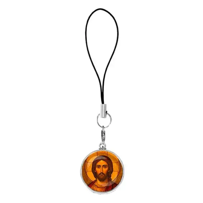 Подвеска для телефона, цвет серебро, со шнурком, Иисус Христос C1101060
