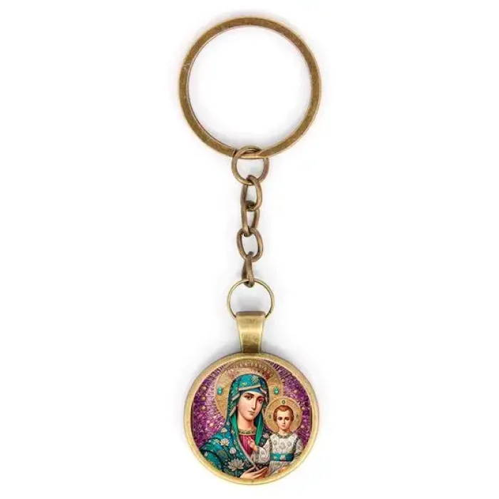 Этот круглый брелок с изображением Богородицы и Иисуса — символ духовности и веры. Изготовленный из бижутерного сплава с покрытием под бронзу и стекла, он станет не только практичным аксессуаром, но и значимым подарком для близких. Размеры брелка (с кольцом и цепочкой) составляют 28х95 мм, что делает его удобным для ношения. Изображение защищено выпуклой стеклянной линзой, обеспечивая долговечность и яркость деталей. Такой брелок может стать прекрасным напоминанием о важности веры в повседневной жизни.