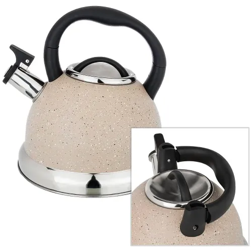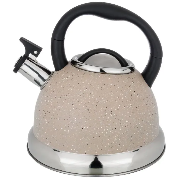 Корпус чайника изготовлен из нержавеющей стали. Капсульное дно с алюминиевой прослойкой аккумулирует тепло, способствуя быстрому закипанию и сохранению температуры воды. Ручка имеет покрытие Soft Touch, которое не нагревается, и оснащена клапаном для удобного наливания. Встроенный свисток сигнализирует о закипании воды.