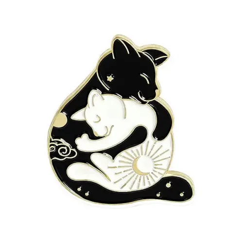 Металлический значок с эмалевым покрытием и дизайном «Коты День-Ночь».
