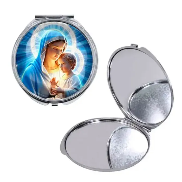 Круглое складное зеркало с изображением Богородицы и Иисуса — это не только практичный аксессуар, но и символ духовности. Изготовленное из высококачественного металла и стекла, оно станет прекрасным дополнением к любому интерьеру. Основные особенности: