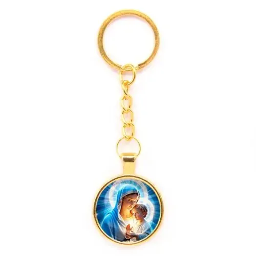 Круглый брелок, цвет золото, с цепочкой, Богородица с Иисусом C1103020