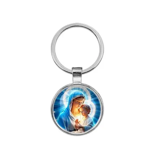 Круглый брелок, цвет серебро, Богородица с Иисусом C1103021