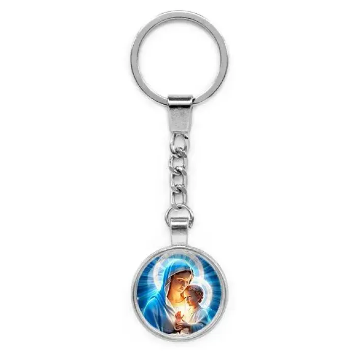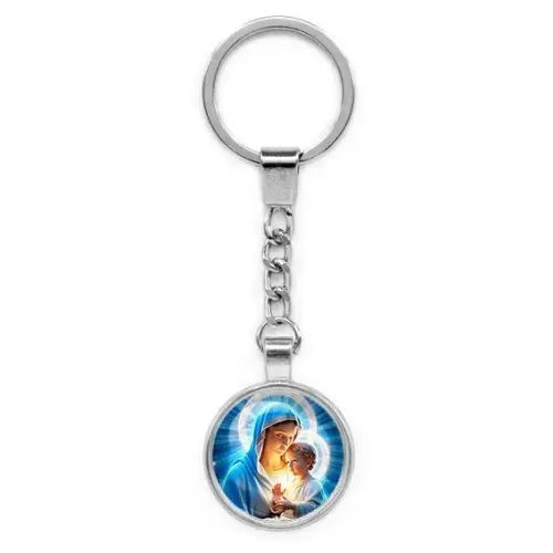 Круглый брелок с изображением Богородицы и Иисуса — это не только стильный аксессуар, но и символ веры. Изготовленный из бижутерного сплава с покрытием под серебро и стекла, он станет прекрасным подарком для близких или личным оберегом. Основные особенности: