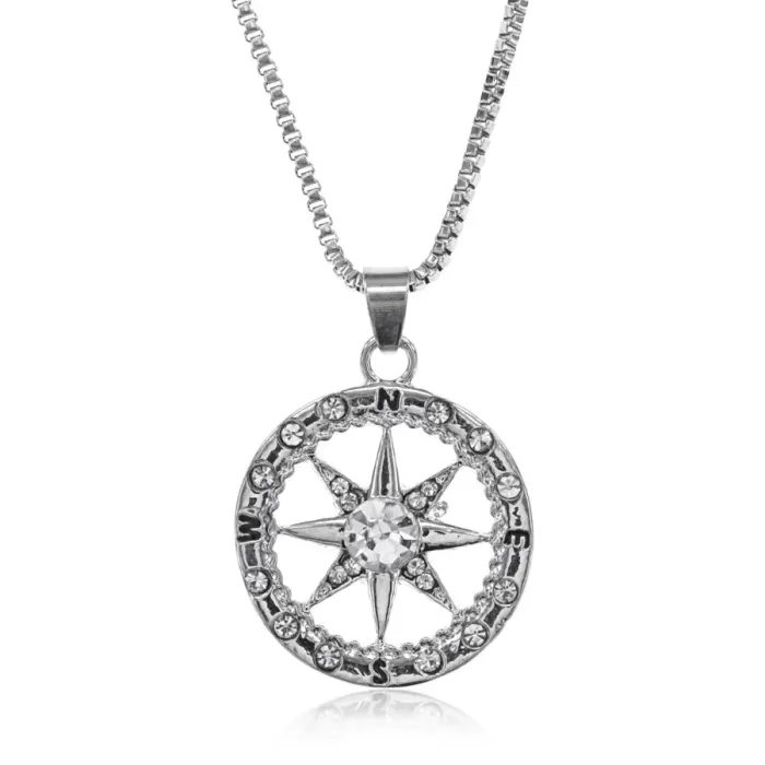 Амулет Компас — это стильный аксессуар, который сочетает в себе утонченность и символику. Он традиционно считается оберегом, помогающим найти верный путь в жизни. Изготовленный из бижутерного сплава с покрытием под серебро, амулет украшен стразами, что придаёт ему особый блеск.