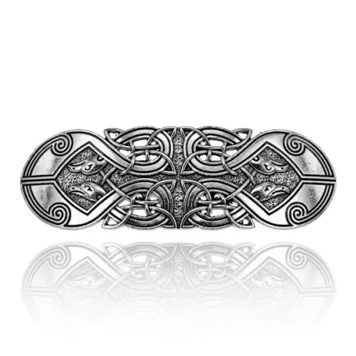 Зажим для волос с изображением воронов Одина. Изготовлен из металла с серебряным покрытием.