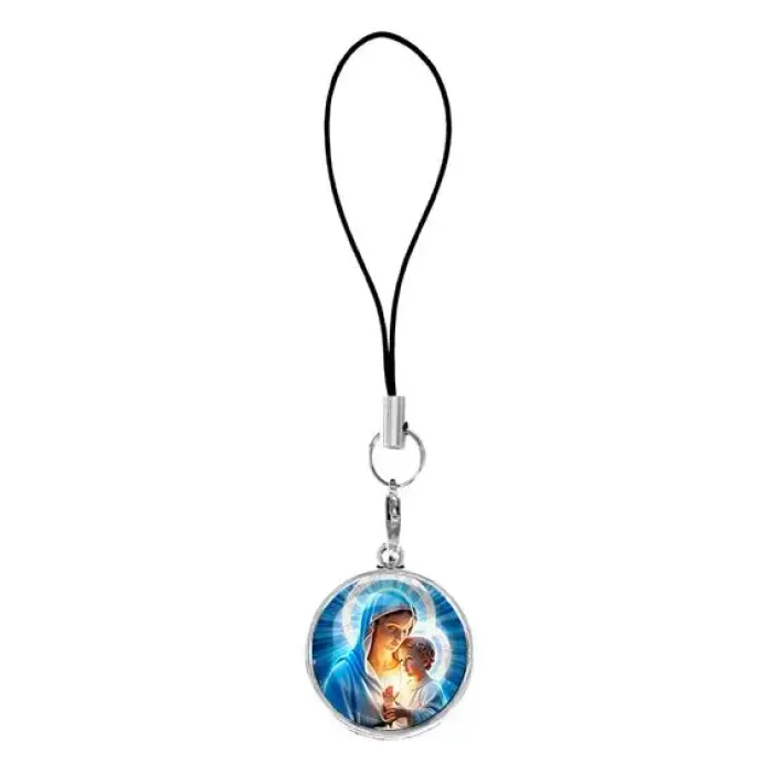 Подвеска для телефона, цвет серебро, со шнурком, Богородица с Иисусом C1103060