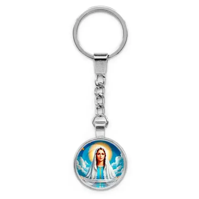 Круглый брелок с изображением Покрова Пресвятой Богородицы — это не только стильный аксессуар, но и символ защиты и благословения. Изготовленный из бижутерного сплава с покрытием под серебро и стекла, этот брелок станет прекрасным подарком для близких или оригинальным дополнением к ключам. Размер изделия составляет 28х95 мм, а изображение защищено выпуклой стеклянной линзой, что придаёт ему особую выразительность. В народе такой брелок ценится за свою духовную значимость и красоту.