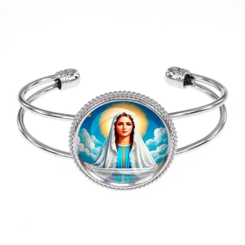 Элегантный браслет с изображением Покрова Пресвятой Богородицы станет символом веры и защиты. Изготовленный из бижутерного сплава с покрытием под серебро, он отличается прочностью и долговечностью. В центре изделия находится изображение диаметром 25 мм, защищенное выпуклой стеклянной линзой, что придает ему особую выразительность. Размер браслета безразмерный, что позволяет удобно носить его на любой руке. Этот аксессуар не только украсит внешний вид, но и станет значимым подарком для близких в важные моменты жизни.