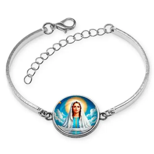 Элегантный браслет с изображением Покрова Пресвятой Богородицы станет прекрасным украшением и символом веры. Изготовленный из бижутерного сплава с покрытием под серебро, он обладает стильным дизайном и прочностью. Основные особенности: