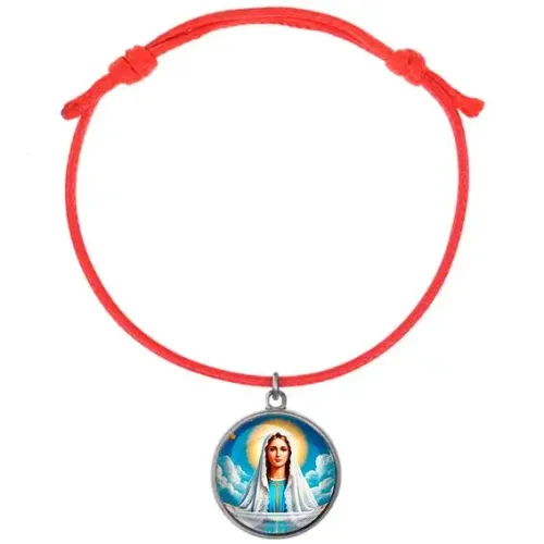 Браслет из красного шнура с подвеской, символизирующий защиту и благословение. Изготовлен из прочного материала, он станет стильным аксессуаром и оберегом. Подвеска выполнена из металлического основания с полиграфической вставкой под выпуклым стеклом, диаметр изображения составляет 20 мм. Такой браслет традиционно используется как знак веры и надежды на покровительство Пресвятой Богородицы.