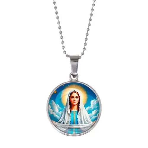 Кулон с изображением Покрова Пресвятой Богородицы — это не только стильный аксессуар, но и символ веры и защиты. Он выполнен из бижутерного сплава с покрытием под серебро и дополнен стеклянной линзой, что придаёт изображению особую выразительность.
