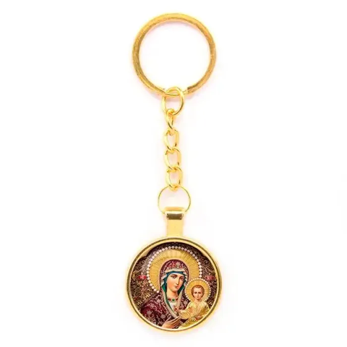 Круглый брелок, цвет золото, с цепочкой, Богородица с Иисусом C1105020