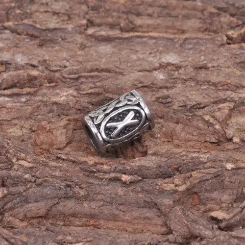 Бусина для волос Viking из нержавеющей стали с изображением руны Гебо.