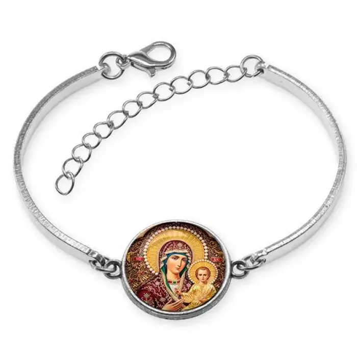 Браслет металлический, цвет серебро, Богородица с Иисусом C1105046