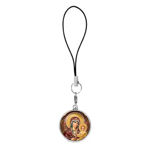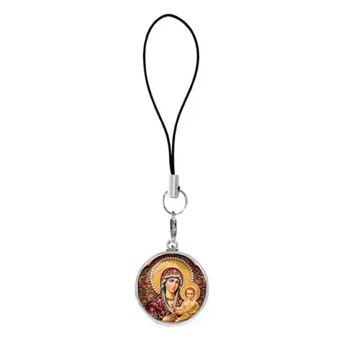 Подвеска для телефона, цвет серебро, со шнурком, Богородица с Иисусом C1105060