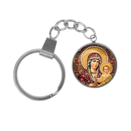 Брелок из нержавеющей стали — это не только стильный аксессуар, но и символ веры. Изображение Богородицы с Иисусом под стеклянной линзой создает эффект глубины и придаёт особую значимость этому предмету. Основные особенности: