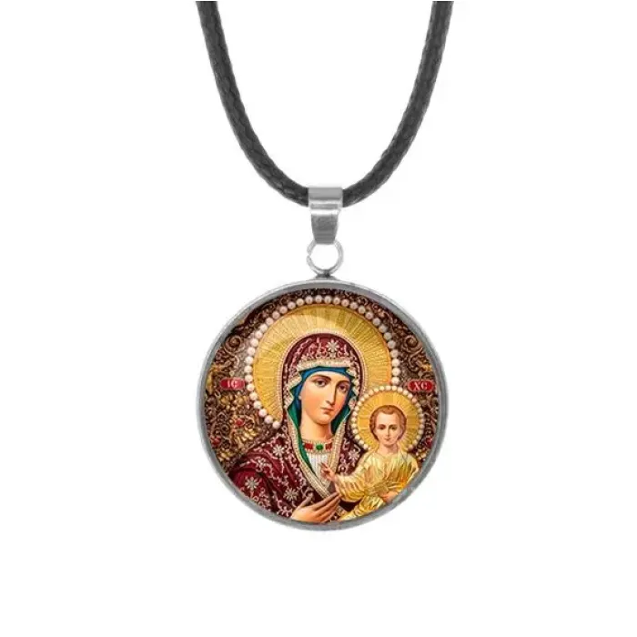 Кулон-амулет из нержавеющей стали — это не только стильный аксессуар, но и символ веры. Изображение Богородицы с Иисусом под выпуклой стеклянной линзой создает эффект глубины и привлекательности. Основные особенности: