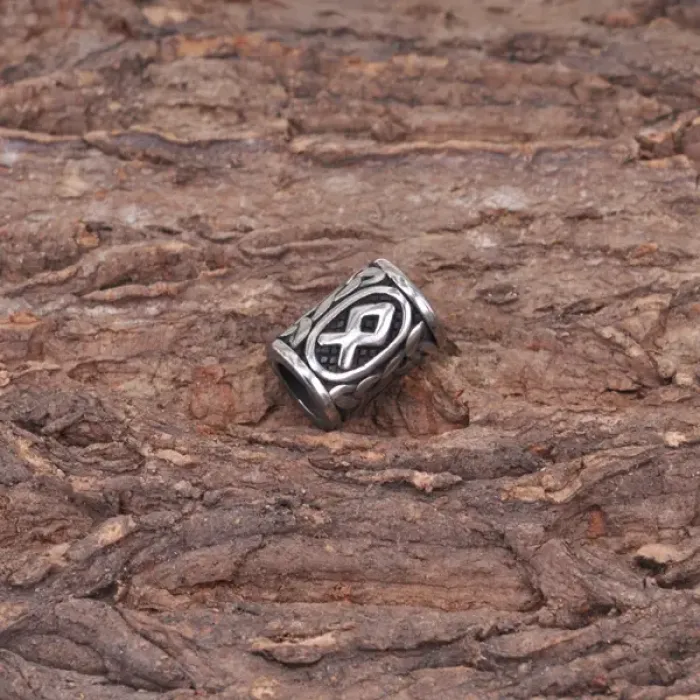 Бусина для волос Viking с руной Одал из нержавеющей стали.