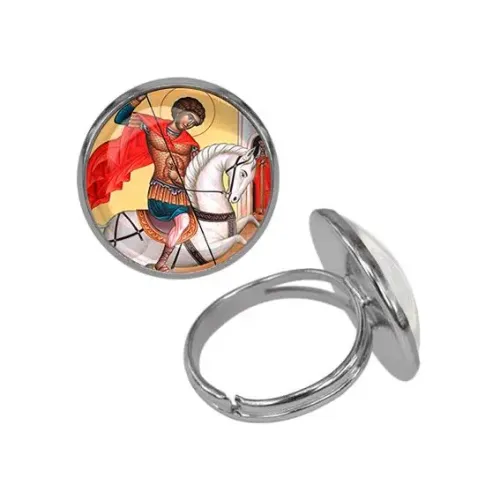 Кольцо с изображением святого Георгия Победоносца — символа мужества и силы. Это безразмерное украшение станет отличным подарком для ценителей исторической символики. Изготовлено из бижутерного сплава с покрытием под серебро и стеклянной линзой диаметром 20 мм, что придаёт изделию элегантный вид. Кольцо прекрасно подходит как для повседневной носки, так и для особых случаев, добавляя индивидуальности любому образу. В народе кольцо с образом Георгия традиционно ценится за свою защитную силу и вдохновение.