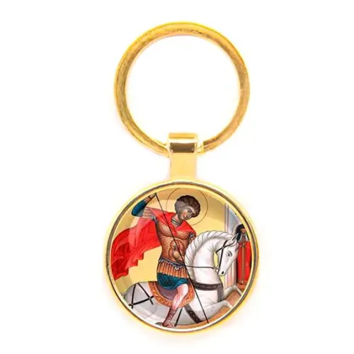 Круглый брелок, цвет золото, Георгий победоносец C1107019