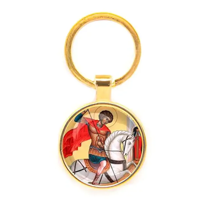 Круглый брелок с изображением Георгия Победоносца — это стильный аксессуар, который станет отличным подарком и символом мужества. Изготовленный из бижутерного сплава с покрытием под золото и стекла, этот брелок сочетает в себе элегантность и прочность. Размеры изделия (с кольцом) составляют 28х60 мм, а выпуклая стеклянная линза надежно защищает изображение от повреждений. Такой брелок традиционно ценится за свою красоту и глубокий смысл, что делает его идеальным для поклонников истории и культуры.