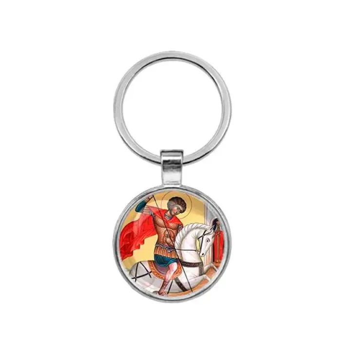 Круглый брелок, цвет серебро, Георгий Победоносец C1107021