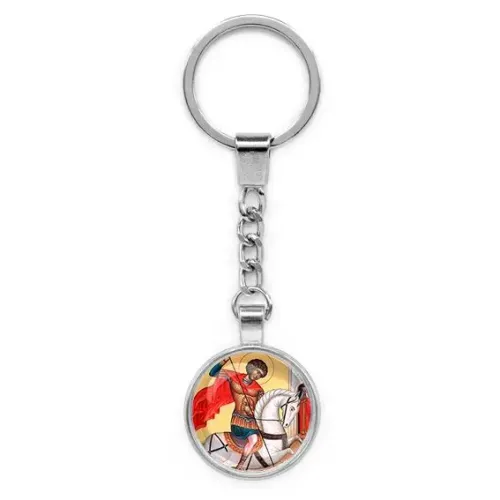 Круглый брелок, цвет серебро, с цепочкой, Георгий победоносец C1107022