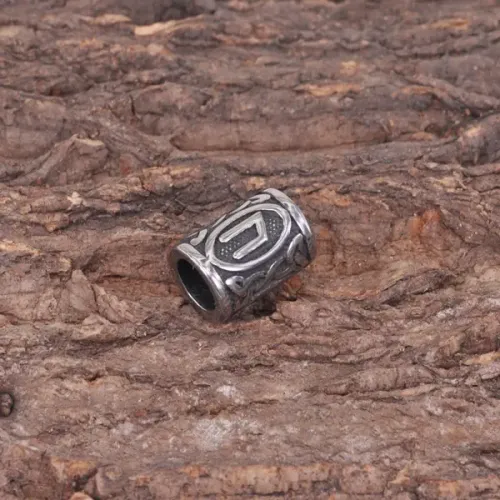 Бусина для волос в стиле Viking с символом руны Уруз, изготовленная из нержавеющей стали.